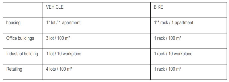 * the number of parking lots may be reduced to 0,7 if, within a radius of300 m, there is a public transport stop with a transport